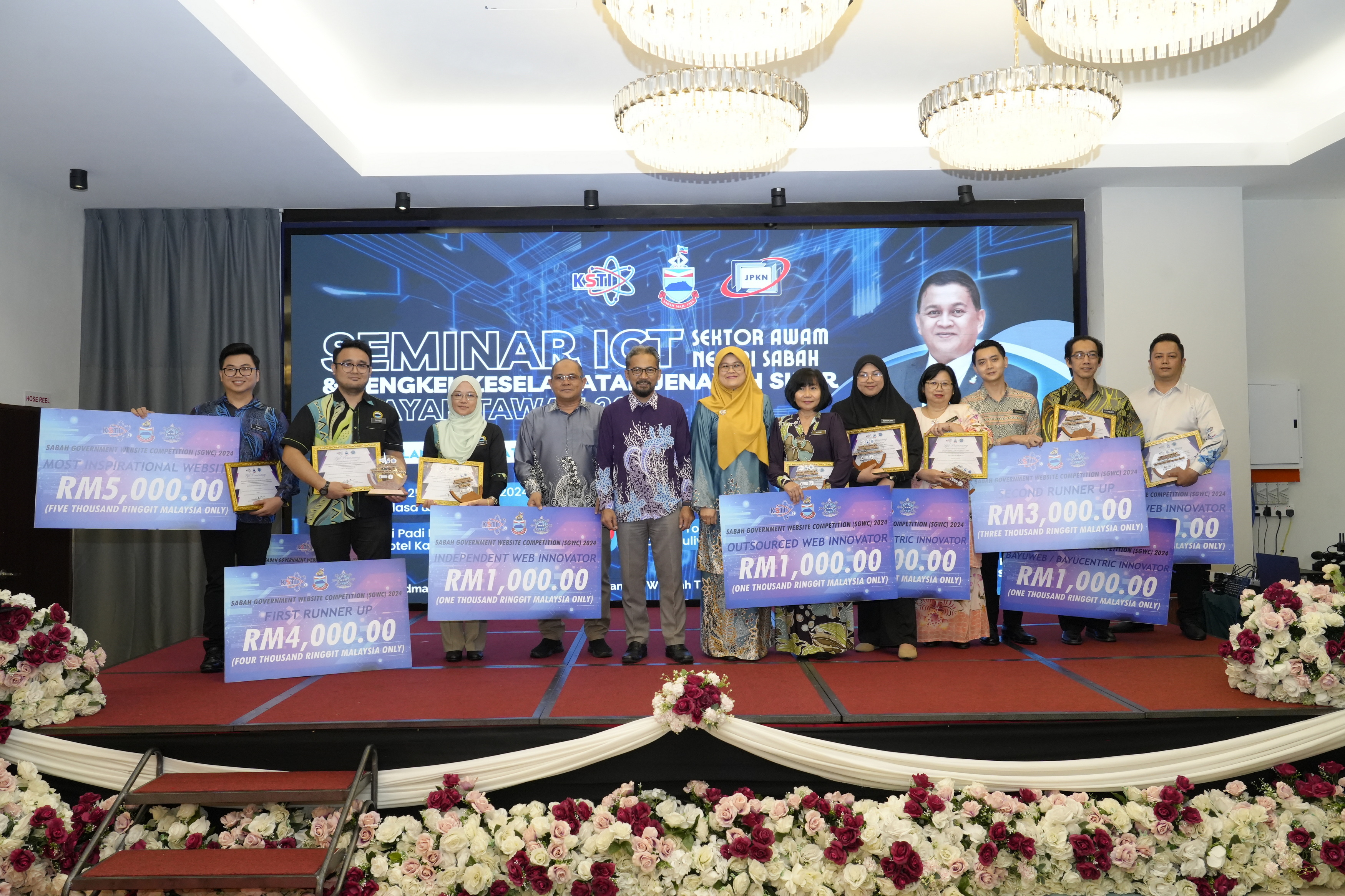 YBhg. Datuk Mohd. Hanafiah bin Mohd. Kassim, Setiausaha Tetap Kementerian Sains, Teknologi dan Inovasi Sabah (KSTI), merasmikan Majlis Penutupan Program Seminar ICT Sektor Awam dan Bengkel Keselamatan Siber Wilayah Tawau di Hotel Kapalai Semporna. YBhg. Datuk Mohd. Hanafiah bin Mohd. Kassim, turut menyempurnakan penyampaian anugerah kepada pemenang "Sabah Government Website Competition (SGWC)" 2024. Syabas dan tahniah diucapkan kepada semua pemenang.